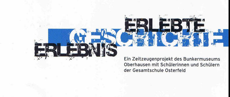 Eben diese Erinnerungen an die Kriegszeit in Oberhausen standen im Mittelpunkt des Bunkermuseum-Projektes „Erlebte Geschichte – Erlebnis Geschichte“. SchülerInnen der Gesamtschule Osterfeld befassten sich mehrere Wochen lang mit der Erinnerungsgeschichte an den Zweiten Weltkrieg und interviewten Zeitzeugen aus Oberhausen und Umgebung. Die Gespräche ermöglichten den Jugendlichen einen neuen, individuellen, Zugang zum Thema „Nationalsozialismus“, fern ab von jeden Geschichtsbüchern. Geschichte wurde greifbar und vor Ort erfahrbar. Doch auch Probleme zeigten sich schnell: das was erinnert wird, ist immer subjektiv und damit nicht selten lückenhaft und flüchtig. Die Erinnerungen der Zeitzeugen wichen voneinander ab und warfen neue Fragen auf, die vielfach nicht beantwortet werden können.